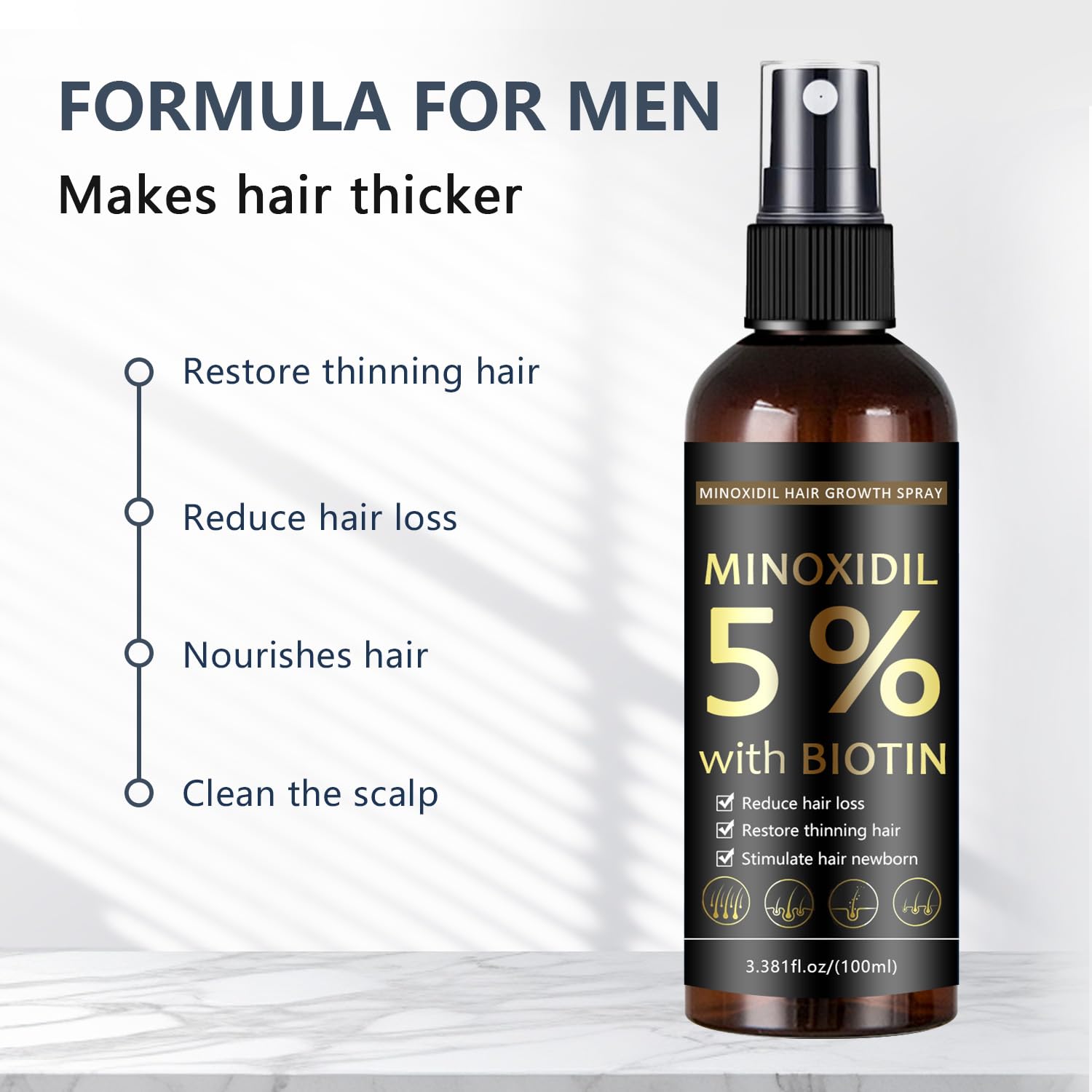 5% Minoxidil Hair & Beard Growth Spray with Biotin for Men & Women, Hair Regrowth, Treatment for Hair Loss & Thinning, for Stronger Thicker Fuller Healthier Hair, for All Hair Types, 3.38 oz