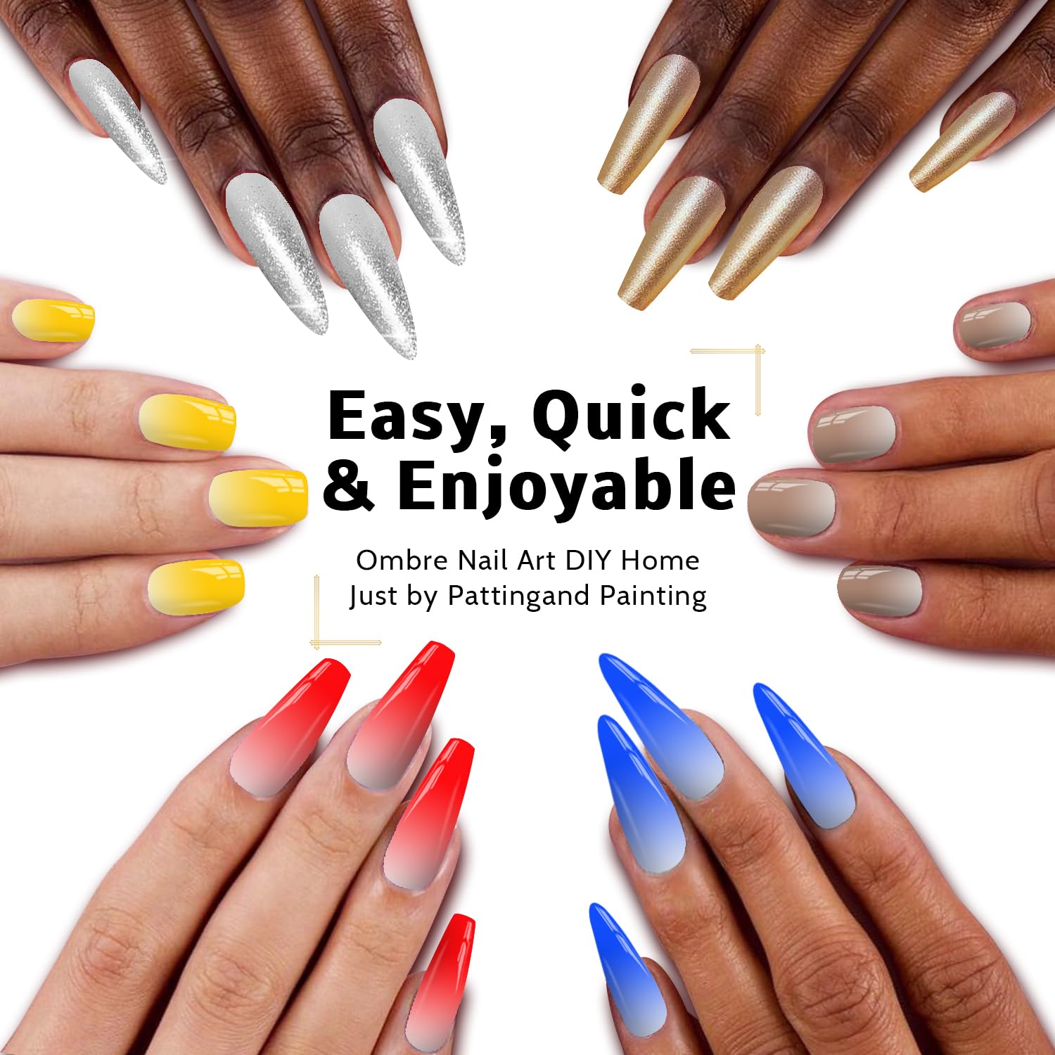 - 【EASY USE:】All steps are the same as normal UV/LED nail gel: 1.Clean and Prep; 2. Base coat and cure. 3. Apply color gel and cure. 4. Top coat and cure. 5. Clean nails and apply oil. Karroy ombre painting nail gel is easy to use: just grabbing a sponge and picking up your desire color, and patting sponge on your nail, you will get wonderful gradient coloring nails!