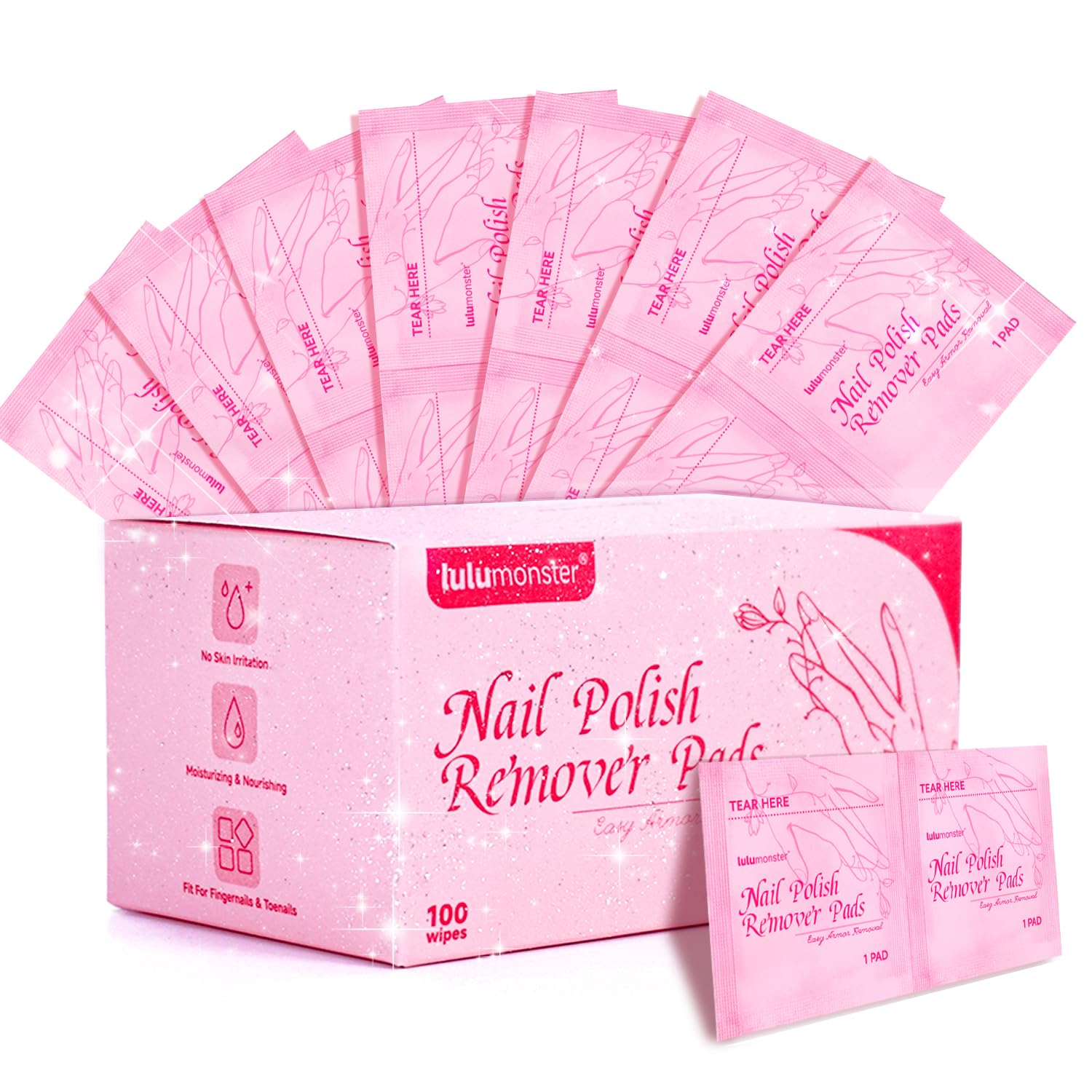 - 【 Non-Toxic Nail Polish Remover 】The LULUMONSTER nail polish remover wipes are individually packaged and fully soaked with nail polish remover, making them easy to use. Nail polish remover pads effectively remove polish without causing damage or dryness, perfect for sensitive skin