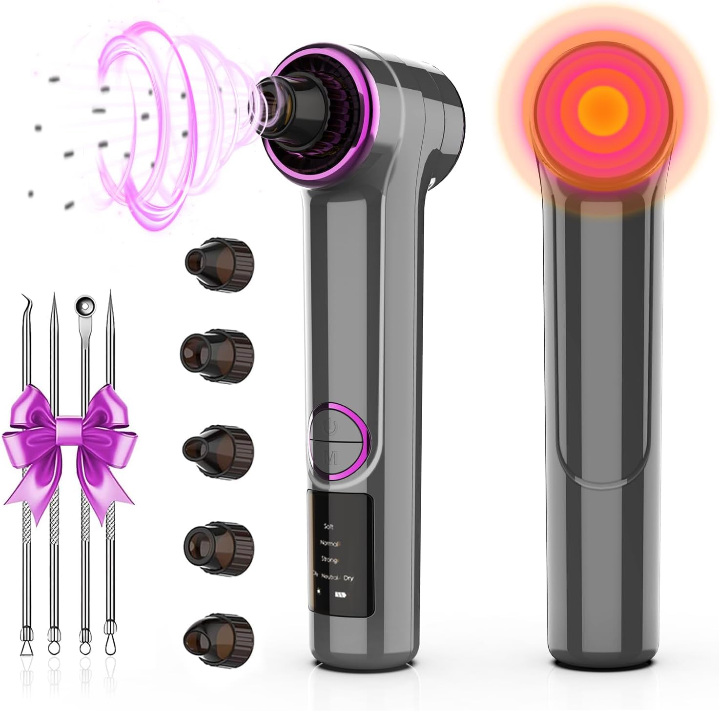 - 3 Adjustable Suction Levels – Low for sensitive skin, medium for daily cleansing, high for oily skin and stubborn blackheads.