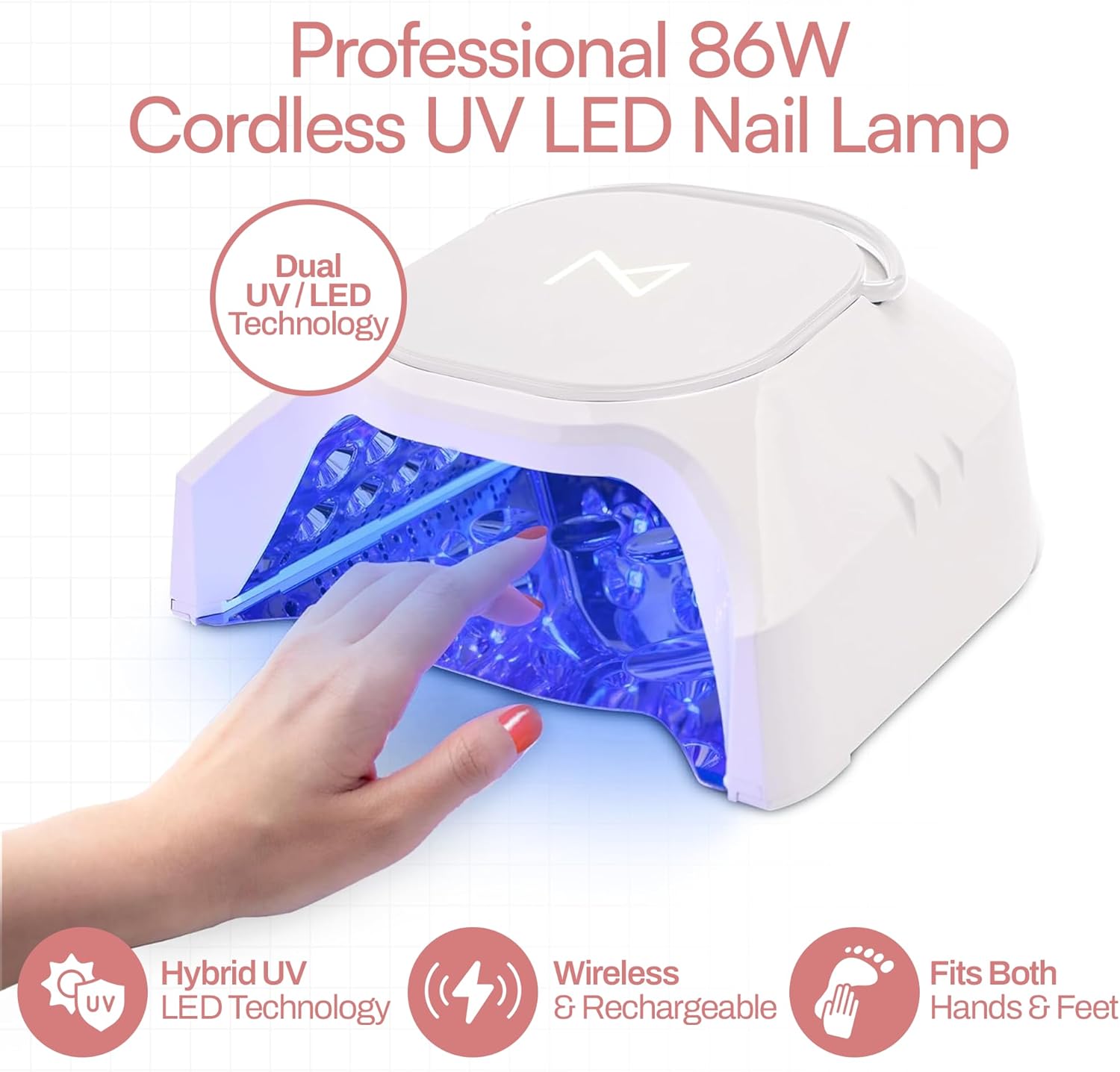 M - GlowPro Professional Hybrid 86W Wireless Rechargeable UV LED Nail Curing Lamp Cordless Nail Dryer for Gel Nails, Manicure, Pedicure (Purple)