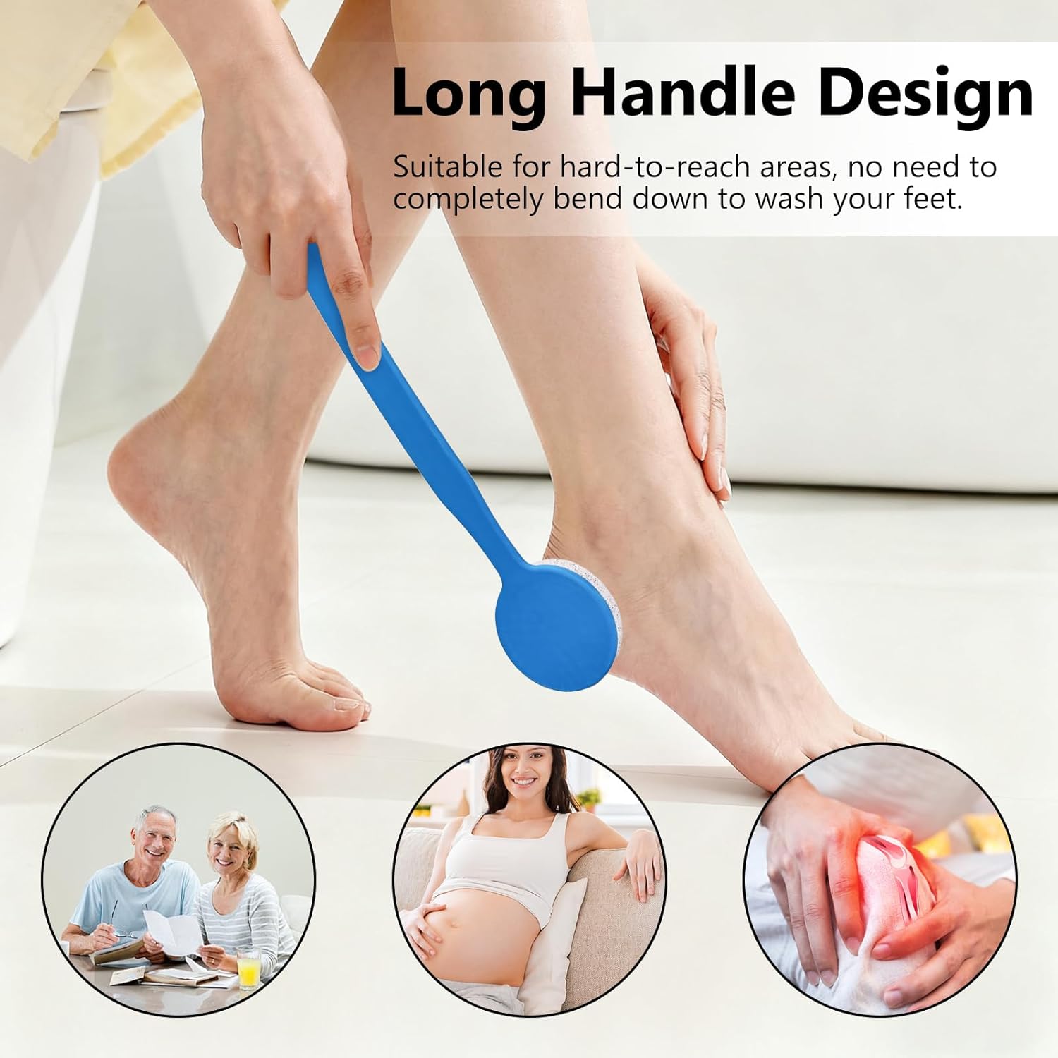Pumice Stone for Feet with Long Handle (Curved Handle, Blue, Count, 1)
