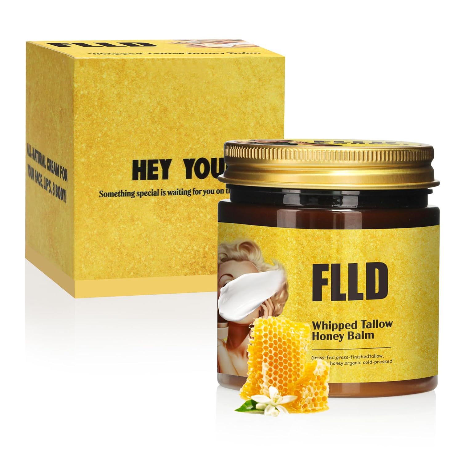 - GRASS-FED TALLOW & RAW HONEY: Organic whipped balm with olive oil for deep skin nourishment—no chemicals or preservatives.