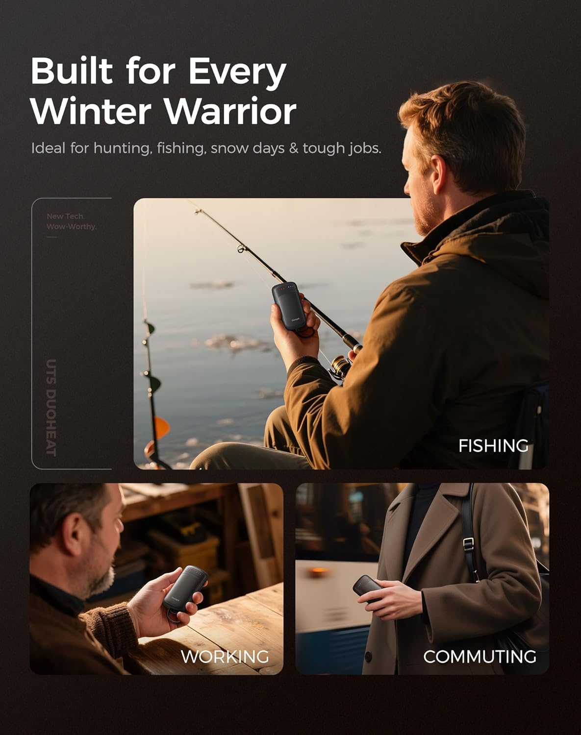 - Two-Pack, Pocket-Friendly Design β Lightweight than a lighter, UT5 Duoheat portable hand warmer weighs just 2.36 oz and 0.6 inches thick, can slips easily into gloves, pockets, or bags. Ideal gift for Christmas, Valentine's Day, or winter birthdays.