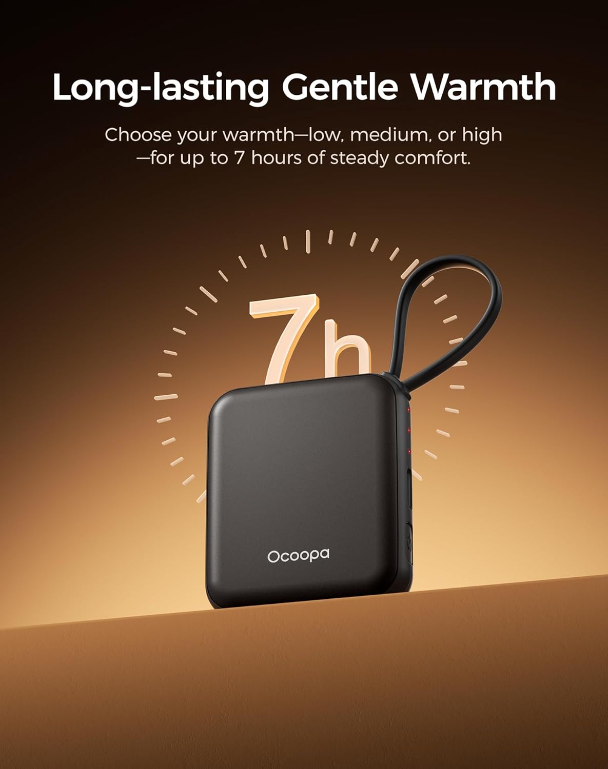 - 3.5-7 Hours All-Day Long-Lasting Heat — Keeps hands cozy from your morning walk to evening dinner without mid-day charging.