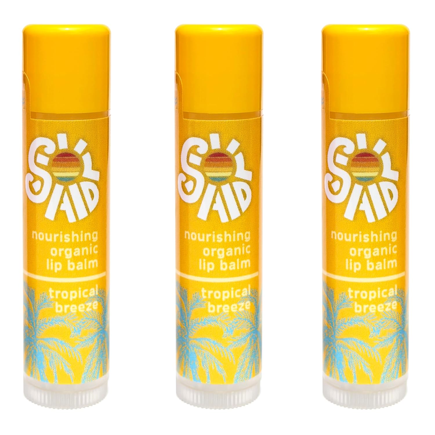 Sol Aid Organic Lip Balm – 100% Natural Lip Moisturizer (3-Pack, Tropical Breeze)