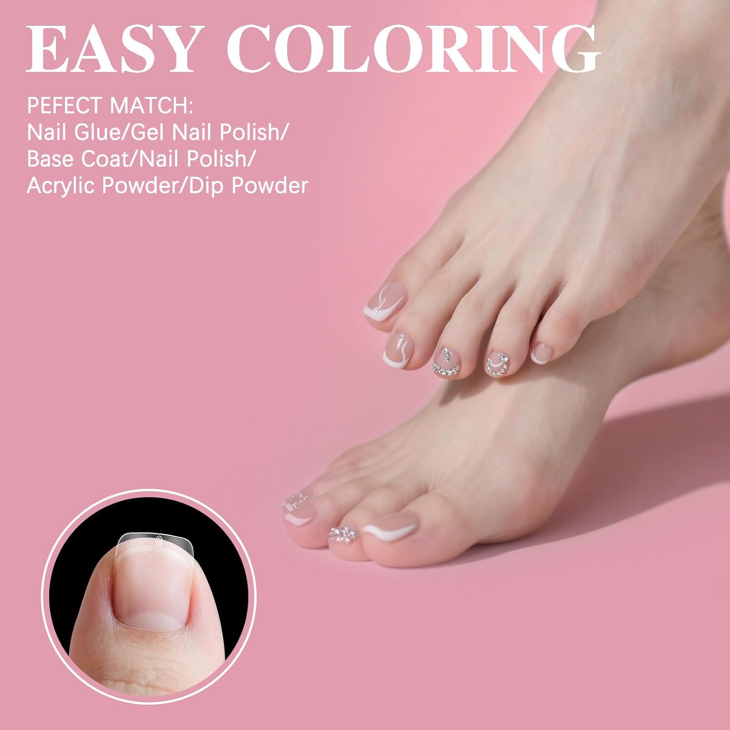 - 💅🏻【Natural Fit & Easy Application】Designed with a durable thick front edge and slim curved back, these fake toenail tips provide a comfortable, gap-free fit. The ergonomic shape ensures natural-looking wear without tightness, while maintaining color integrity without peeling or separation