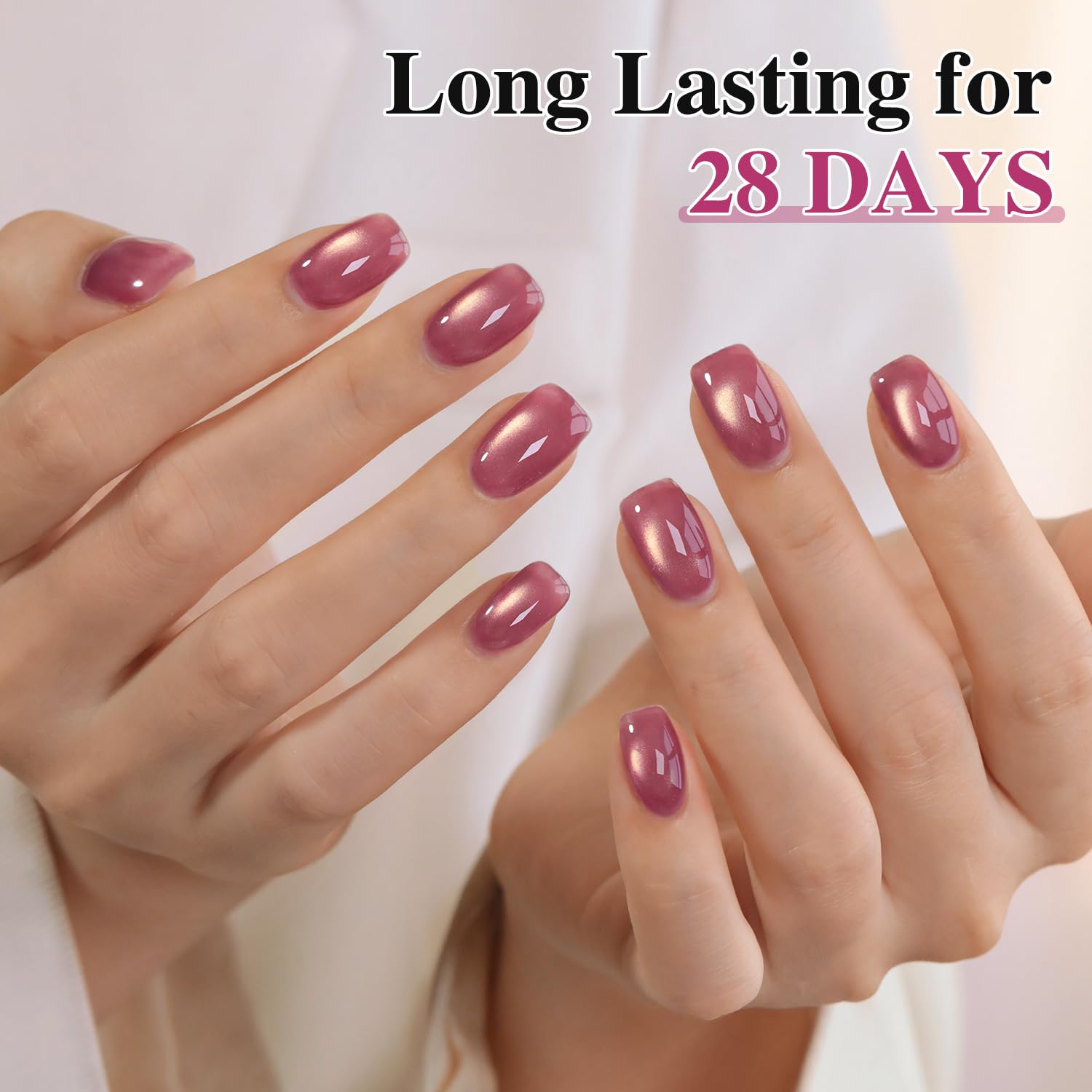 - Cat Eye Gel Nail Polish : Double Rhythm cat eye gel nail polish kit includes 1 color 15ml / 0.5 fl.oz gel nail polish.Come with same color gel with same color bottle and magnet .The cat eye gel can be combined with different bacse colors arbitrarily, you can get different colors nail art.You can use different base coat to creat different sytles.