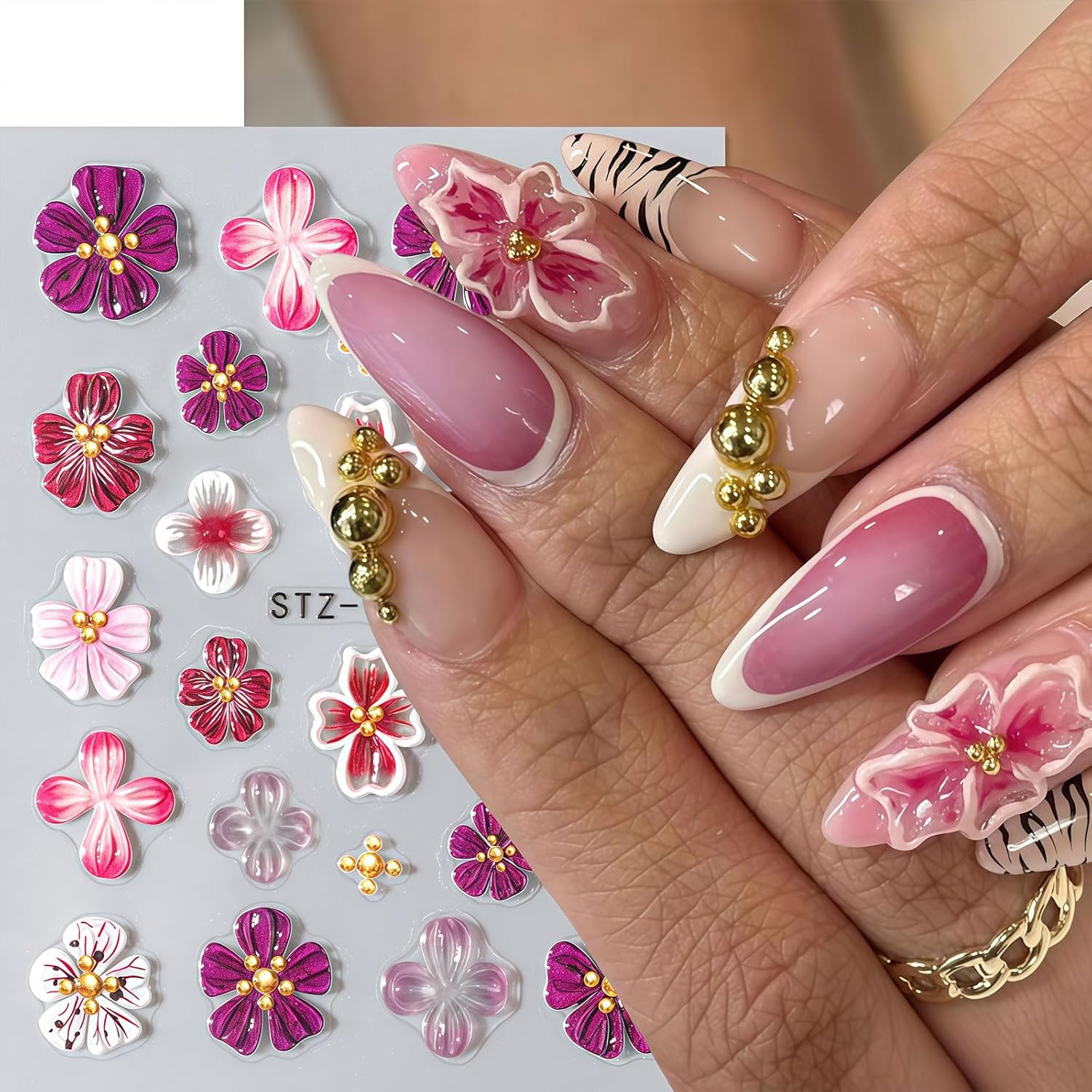 - 【Safety Materials】 Our flower nail decals are made of safe and environment-friendly materials, non-toxic, not limited to any skin, and safe to use. You can design your own unique nail effect.