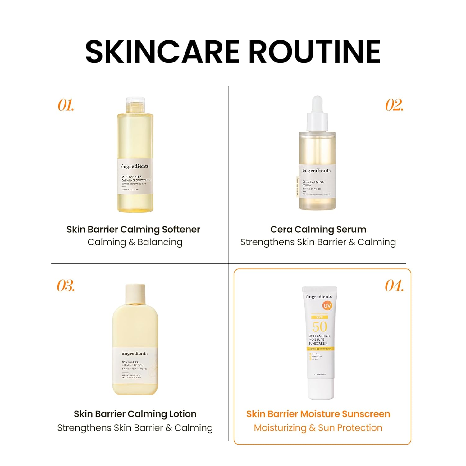 ONGREDIENTS Skin Barrier Moisture Sunscreen Broad Spectrum SPF 50, Glowy Finish, Non-Sticky, No White Cast, Hydrating, Moisturizing, Airy Texture, Korean Skin Care, All Skin Types (1.7 fl. Oz)