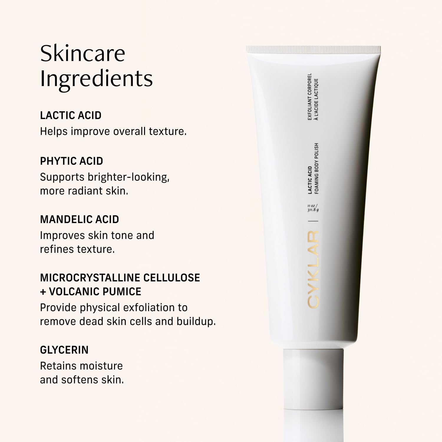 Lactic Acid Foaming Body Polish – Exfoliating Body Wash with Chemical & Physical Smoothers – Includes Glycerin Hydration, Mandelic Acid & Volcanic Pumice. Fragrance-Free, 11 fl oz