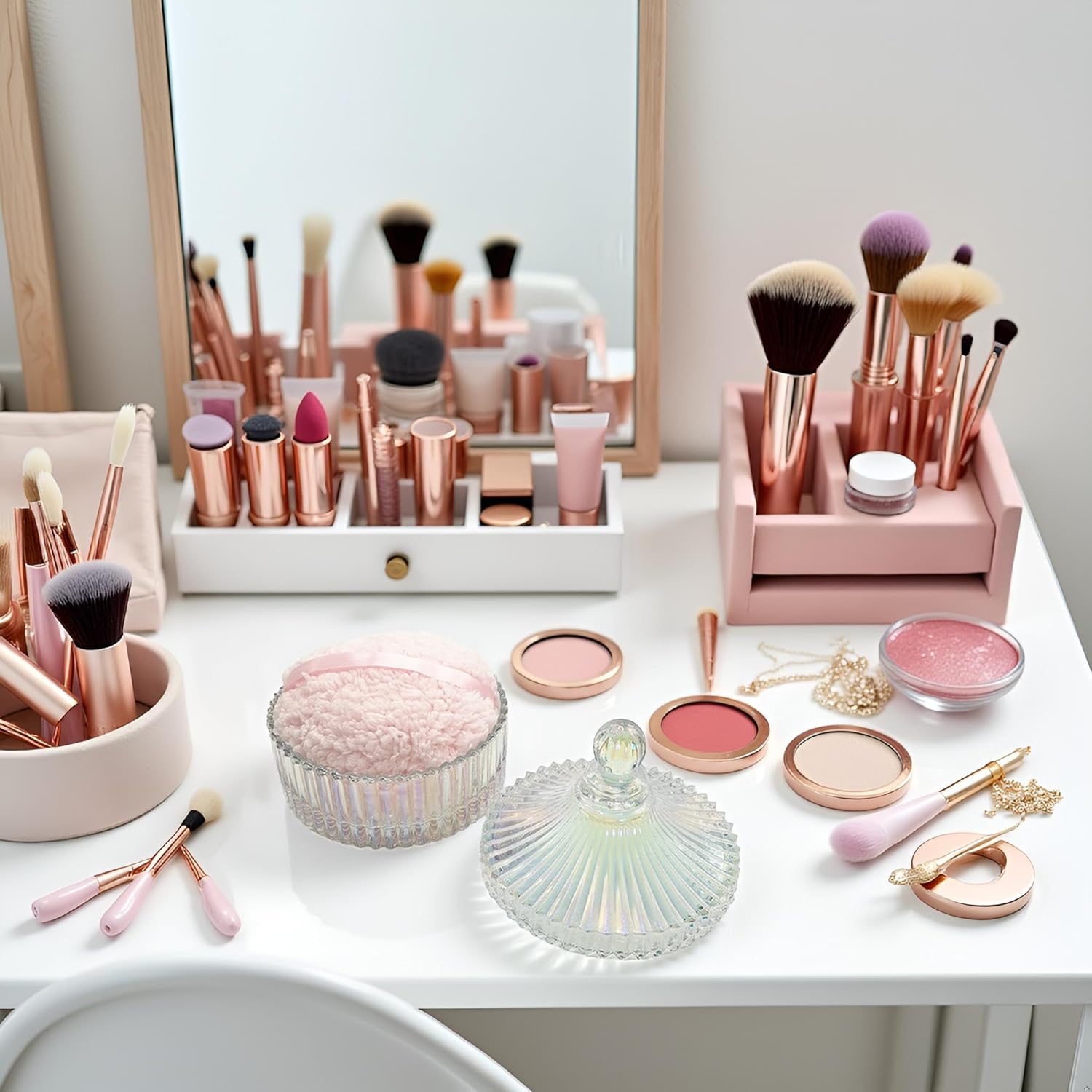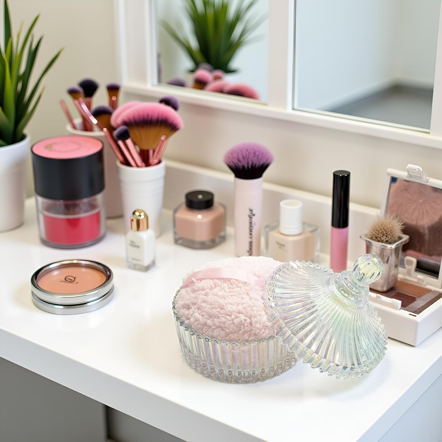 - 【Durable & Easy to Clean】 This glass powder puff container is made of high quality glass material, beautiful and durable. This product is not a sealed jar, which is easy to clean and take care of daily, it doesn't take up too much space, but can store your daily trinkets and keep your items organized
