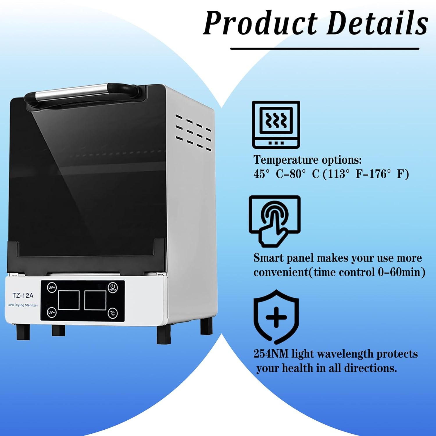 Nail Tool cleaning cabinet, Large capacity Stainless Steel cleaning, with Drying Function, Temperature and Timer Control, up to 60 Minutes, 110V Power Supply